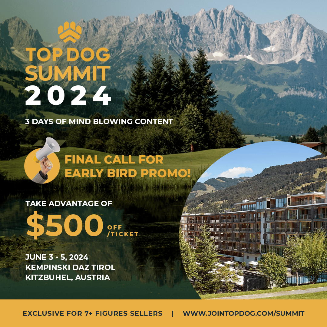 Talking about sales pitches inside of newsletters, just a friendly reminder that the early-bird pricing with $500 off for the 6th Annual Top Dog Summit closes on February 15th, 2024, click here to get your discount before all the seats are gone.